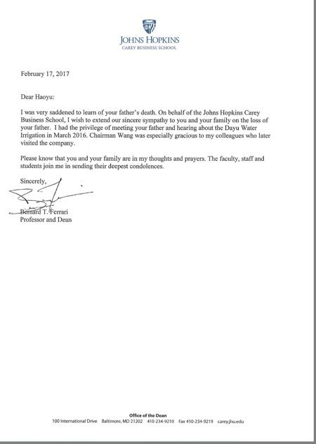 霍普金斯大学唁电