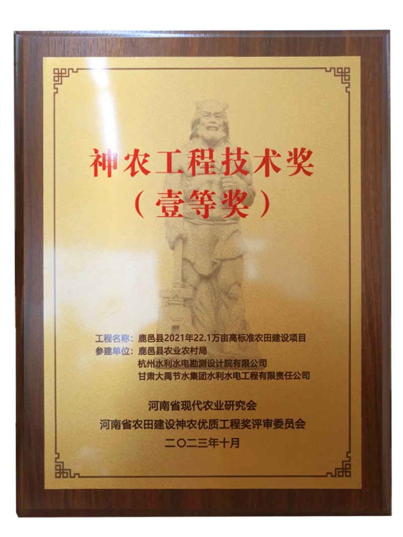 12月26日,新宝gg节水承建的鹿邑县2021年22.1万亩高标准农田建设项目荣获2023年度神农工程手艺奖一等奖。。。。。。