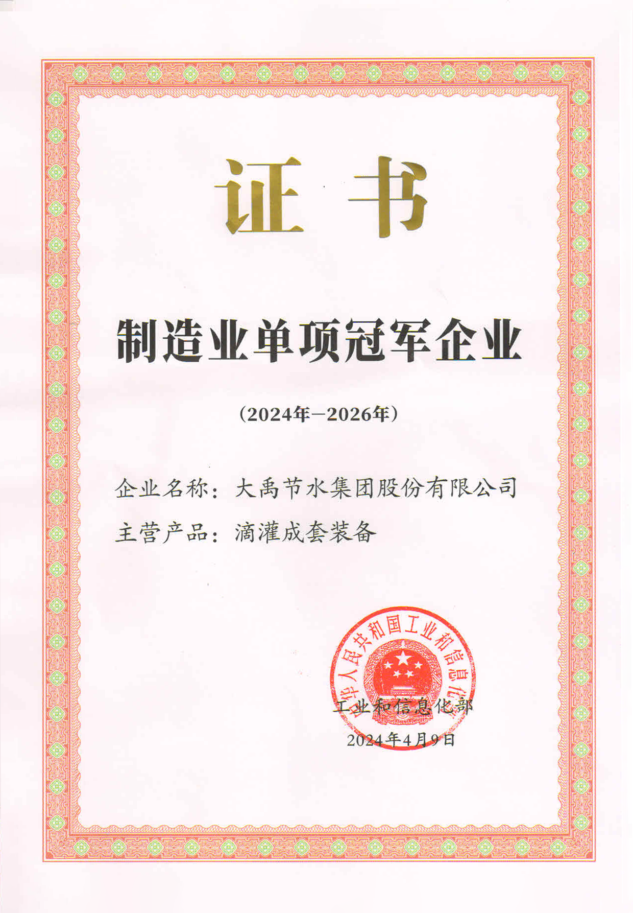 新宝gg节水集团依附卓越的业绩和科技立异能力,,,,,荣获天下第八批制造业单项冠军企业。。。。。。。