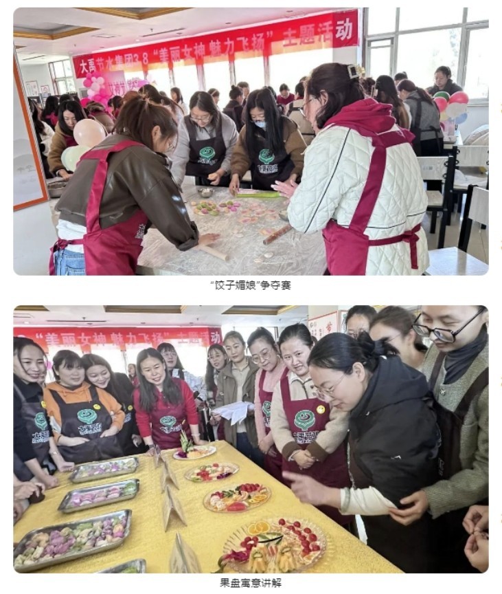 3月8日,,,,,,新宝gg节水集团驻酒泉、天津等板块、公司共计600余位女性员工加入创意包饺子运动。。。。。。本次运动公司为列位女神们全心准备了颜色各异的面团、康健营养的饺子馅、林林总总的水果食材、定制的围裙、温馨的祝福、浪漫的花朵和知心的礼物,,,,,,为节日增添了无限的惊喜和欢喜。。。。。。