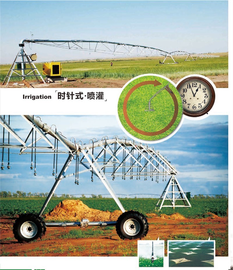 在中心支轴上装有3个或4个轮胎,,,,,,,当某一块地浇灌竣事后,,,,,,,可将喷灌机拖到另外一块地上继续喷灌,,,,,,,这种设计可以实现一台机械浇灌多处地块,,,,,,,大大节约单位面积的投资本钱。。。。。。。。
