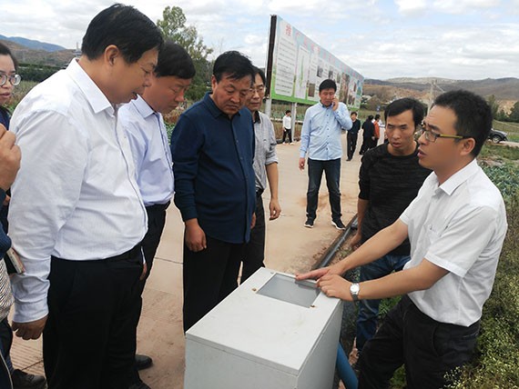 10月19日-21日,,,,,,,吴忠市利通区水务局局长杨汉清、建管站站长杨文贤、扁担沟扬水站站长余长虹一行到新宝gg节水集团承建的元谋县丙间大型灌区11.4万亩高效节水浇灌PPP项目举行调研考察。。。。。。。集团公司副总裁刘伟芳、武威公司董事长王立军、西南公司总司理贾林等全程陪同考察。。。。。。。
