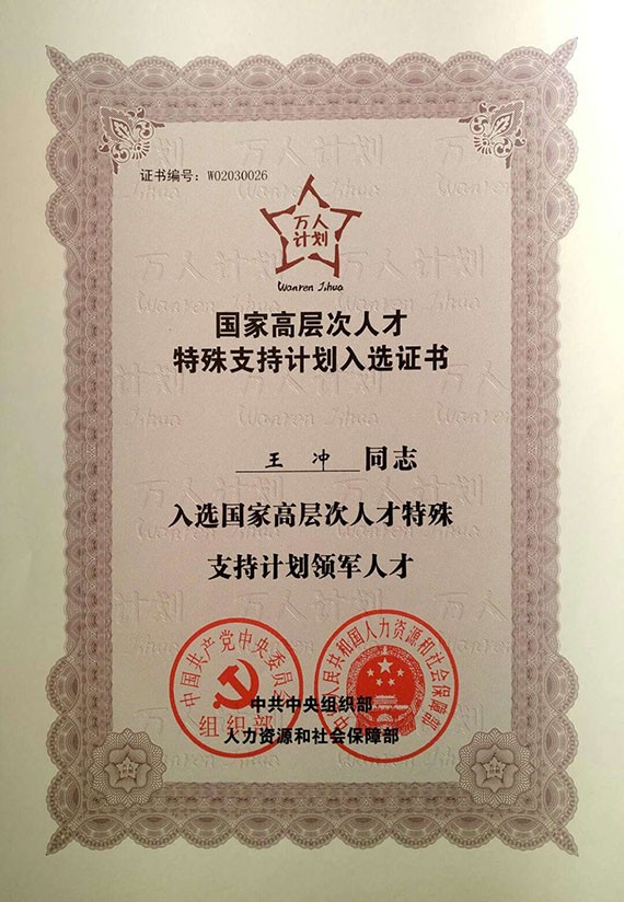 克日,,,,,中组部和人社部为入选国家"万人妄想"专家揭晓了"国家高条理人才特殊支持妄想领武士才"入选证书。。。。。。新宝gg节水集团公司党委书记、新宝gg节水(天津)有限公司董事长王冲做为入选国家"万人妄想"科技创业领武士才获颁入选证书。。。。。。
