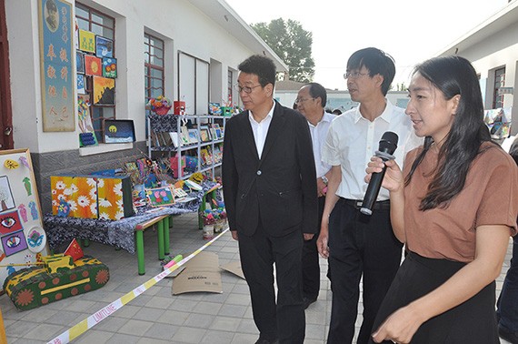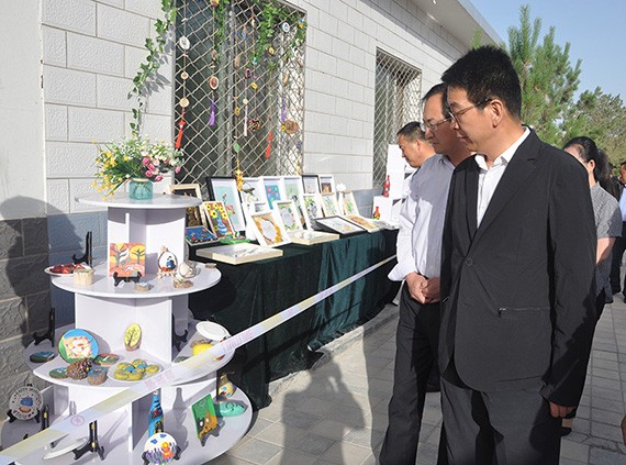 新宝gg节水集团党委书记王冲一行的到来受到了学校向导、师生的热烈接待,,,,,,王冲一行首先来到少年宫特色作品展区,,,,,,寓目了学生们制作的种种各样、富厚多彩的美术、手事情品,,,,,,在校先生举行了详尽的解说。。。。。
