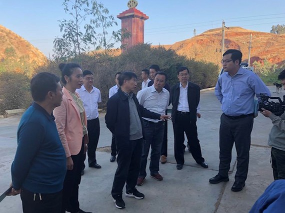 3月2日上午,,,,,,,云南省水利厅厅长刘刚、副厅长訚楠、楚雄州州长迟中华、农水一随处长朱晓柯等向导一行莅临新宝gg节水集团承建实验的元谋县大型灌区丙间片11.4万亩高效节水浇灌项目区调研指导事情。。。。。。。元谋县县委书记习雁、县长吴海芬、州水务局局长李富才、副局长田裕明、元谋高效节水浇灌项目指挥部常务副指挥长张维、县水务局局长雷振宇、副局长彭垭决、新宝gg董事长王浩宇及云南新宝gg节水有限公司相关向导陪同调研。。。。。。。
