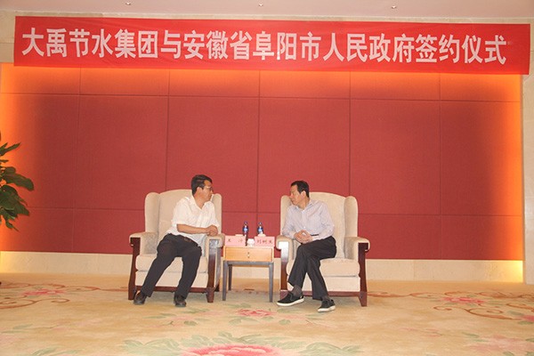 阜阳市副市长刘树生与新宝gg节水集团公司党委书记王冲亲热谈判