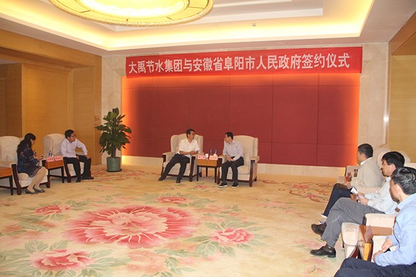 时代,,,,, ,阜阳市市长孙正东、副市长刘树生、副市长张肖等向导亲热会见新宝gg节水集团公司党委书记王冲、董事长王浩宇一行,,,,, ,就双方相助事宜举行了深入谈判。 。。。。。