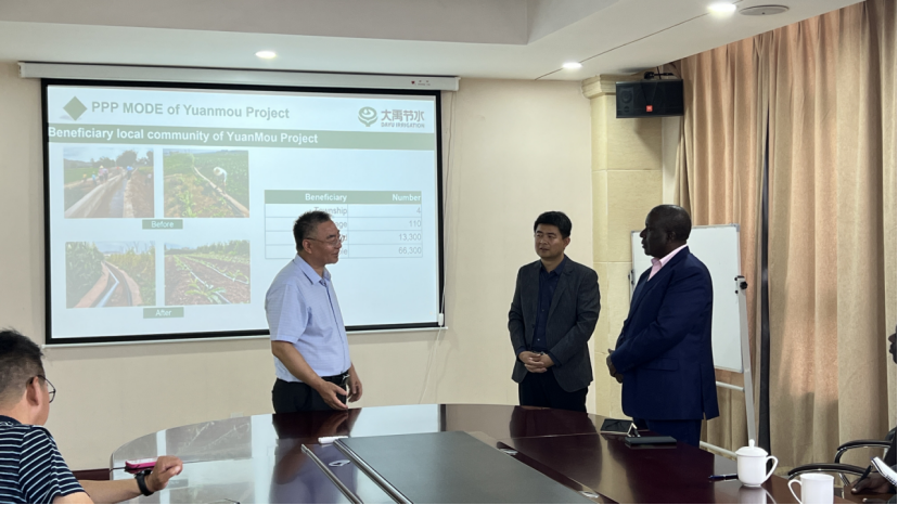 座谈时代,,,,,赞比亚农业部部长Hon Reuben Mtolo先生首先提到了中赞关系的历史渊源,,,,,谢谢中国人民为建设赞比亚做出的孝顺和牺牲。。。。。随后详细先容了赞比亚的基本概况和农业生长情形,,,,,并对赞比亚的政治情形、商业情形、农业工业开展情形做了重点先容。。。。。部长指出,,,,,赞比亚总统提倡鼎力大举生长农业工业,,,,,农业是国家下一步生长的重中之重,,,,,浇灌更是首当其冲。。。。。