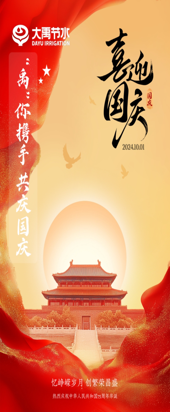 谢永生总裁代表集团祝愿伟大祖国昌盛郁勃,,,,, ,,,祝福新宝gg节水集团事业更上一层楼,,,,, ,,,并向节日时代坚守岗位的员工体现高尚的敬意。。 。。。。。他体现,,,,, ,,,自新中国建设以来,,,,, ,,,中国共产党团结向导天下各族人民,,,,, ,,,砥砺前行,,,,, ,,,实现了从站起来、富起来到强起来的伟大奔腾。。 。。。。。我们生在红旗下,,,,, ,,,长在春风里,,,,, ,,,要心怀感恩,,,,, ,,,为祖国的昌盛郁勃添砖加瓦,,,,, ,,,为实现中华民族的伟大再起而不懈起劲。。 。。。。。