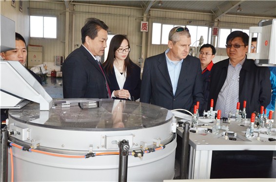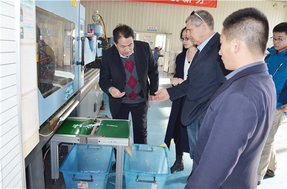 新宝gg节水(天津)有限公司常务副总司理潘钰向Tzur Harel先生先容滴头的生产工艺
