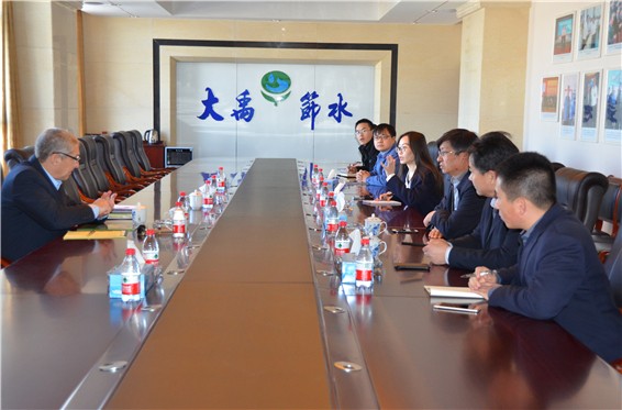 新宝gg节水集团副董事长王冲、新宝gg节水(天津)有限公司总司理张学双、常务副总司理潘钰、新宝gg研究院副院长战国隆等向导与美滋公司亚洲区市场司理Tzur Harel先生合影留念