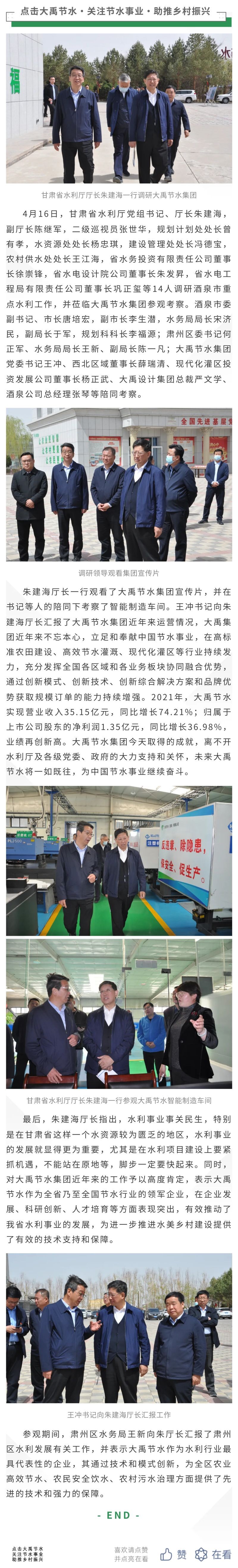 新宝gg动态| 甘肃省水利厅厅长朱建海带队考察省重点水利工程莅临新宝gg节水旅行调研