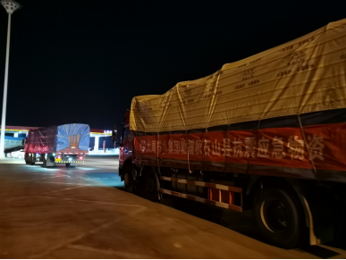物资装车荟萃完毕,,,,,,由太石效劳区出发,,,,,,前往灾区;;;;;;