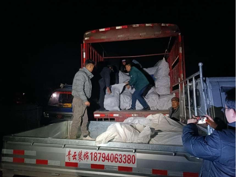 物资抵达大河家镇,,,,,,在镇政府认真人协助下,,,,,,物资划分被送往康吊村、韩陕家村、周家村、陈家村等。。。。。