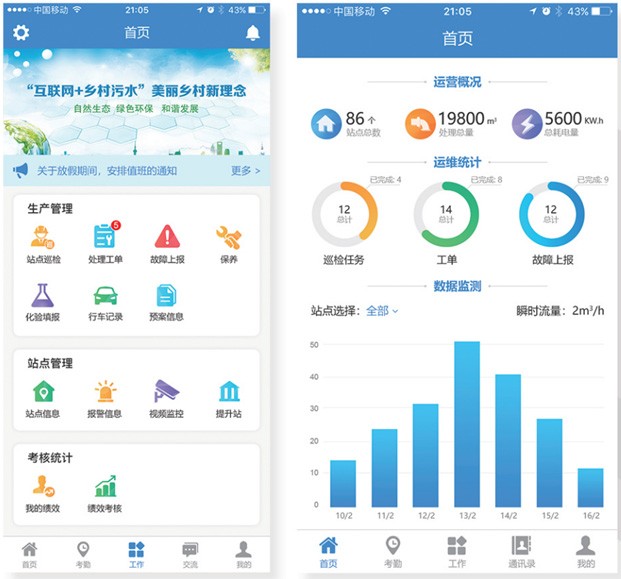 对污水处置惩罚站点按区域制订响应巡检妄想以及巡检周期,凭证远程监测情形和自动报警信息远程派发工单至移动APP,高效完成巡检、工单使命,使命流程全程羁系、事务可追溯、自动汇总统计完成情形。。。。。。。。